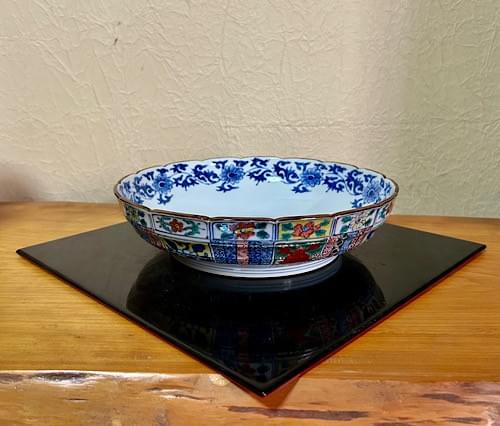 青彩間取草花花形六寸盂